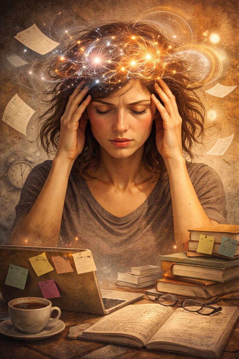 Langdurige mentale druk, piekeren of de behoefte om alles te begrijpen en te controleren kan zich tonen in hoofdpijn, spanning of vermoeidheid.